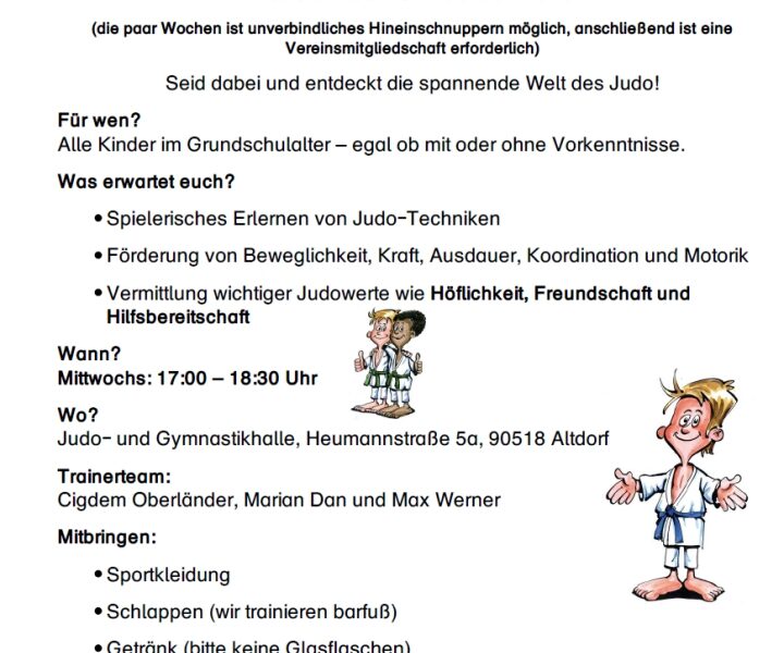 17:00 — 18:30 | Judo: Fitness und Technik U9/U11/Gürteltraining/Anfänger ab Schulkind