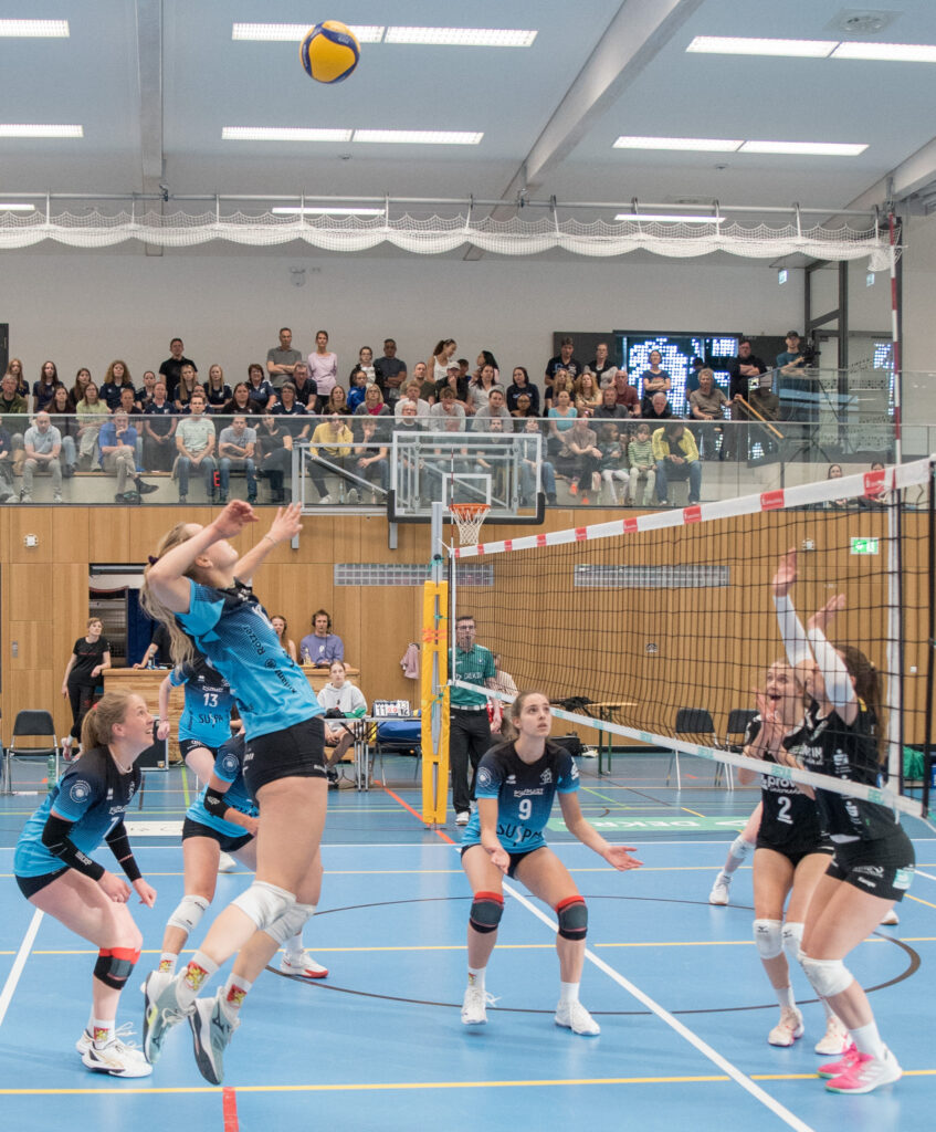 Altdorf – Im Auftaktspiel der neuen Zweitligasaison empfing der TV SUSPA Altdorf am Samstag den TSV Unterhaching in eigener Halle. Das Team um Kapitänin Simona Dammer präsentierte sich mit einer konzentrierten und kompakten Leistung und siegte in knappen Sätzen mit 3:0 (25:23, 25:18, 26:24). Den Zuschauern in der Mittelschulhalle wurde in den gespielten 92 Minuten ein spannender Schlagabtausch geboten.
