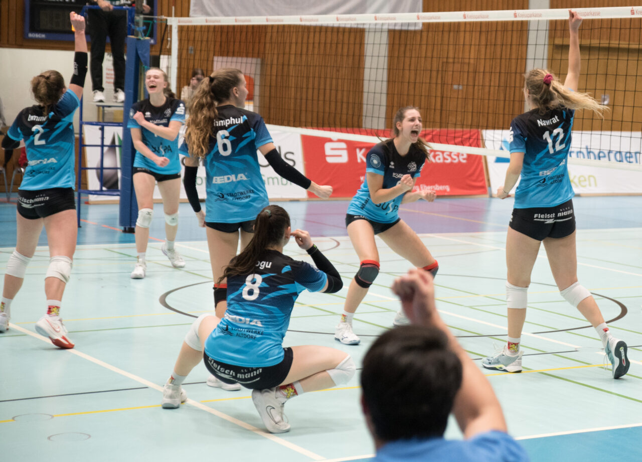 TV-Coach Christy Swagerty konnte knapp vor dem Ende ihrer dritten Saison beim TV Altdorf locker bilanzieren: „Unsere Mädels haben heute gezeigt, dass sie auch in der Lage sind, einen miesen Anfang wegstecken zu können.“ Altdorf habe zwar nicht wenige Aufschläge verschlagen, aber unser Aufschlagdruck sei mit entscheidend für den Erfolg gewesen. Und sie ergänzte: „Wir haben es im Laufe der Rückrunde hinbekommen, Energie von der Bank zu bringen. Nadja und Anna L. und Jadea stehen dafür.“ Im letzten Saisonspiel der Zweiten Bundesliga-Süd visieren die TV-Löwinnen die 44 Punkte an.