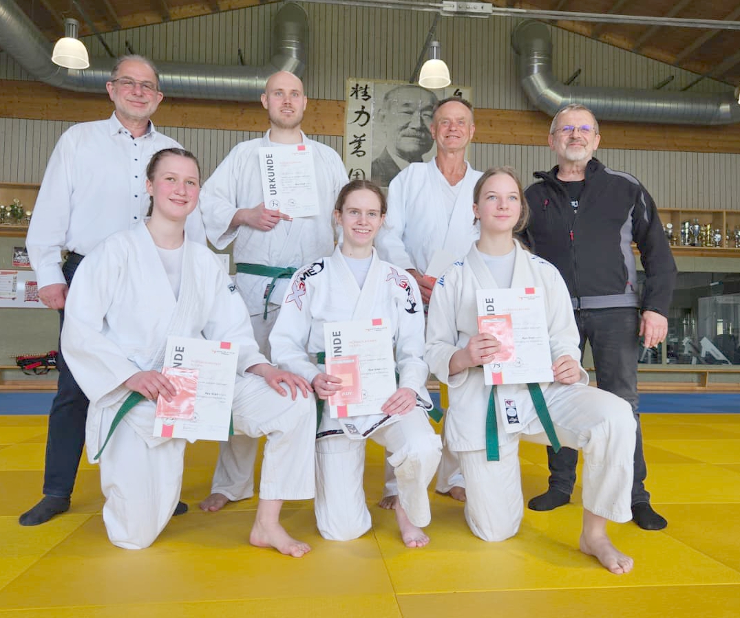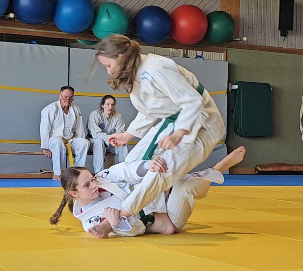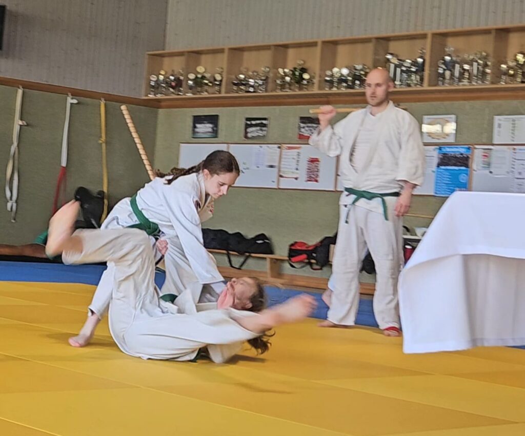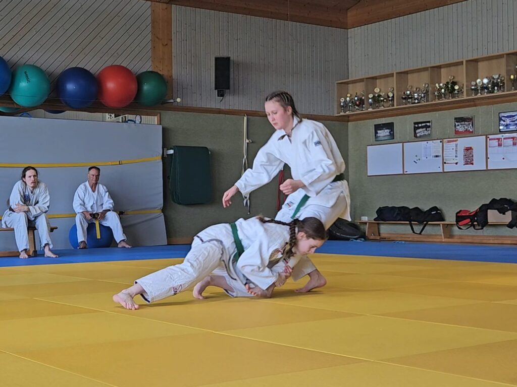 Unter den prüfend­en Augen von Armin Haus­mann 6. Dan (TV Alt­dorf); Jür­gen Wid­mann 2. Dan (AJJC Nürn­berg) zeigten alle Beteiligten konzen­tri­erte, saubere Leis­tun­gen und viel Selbstvertrauen.