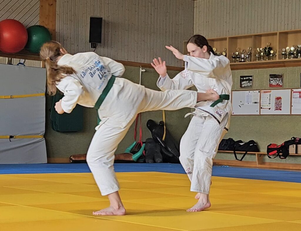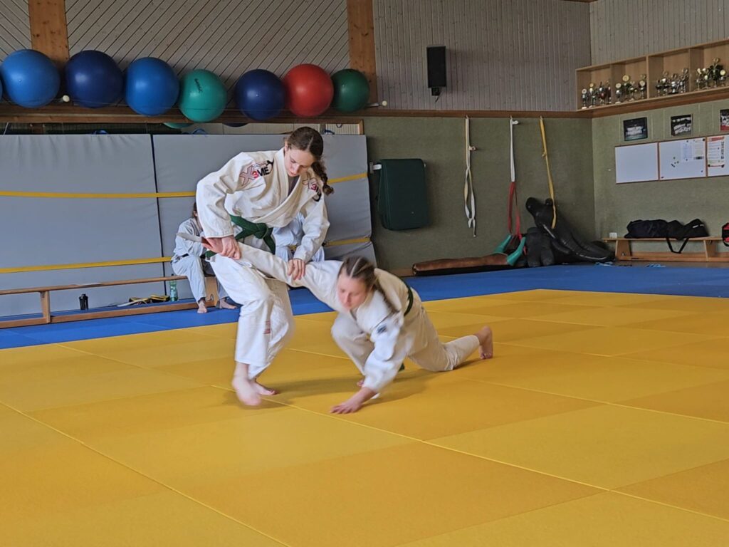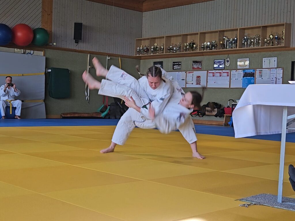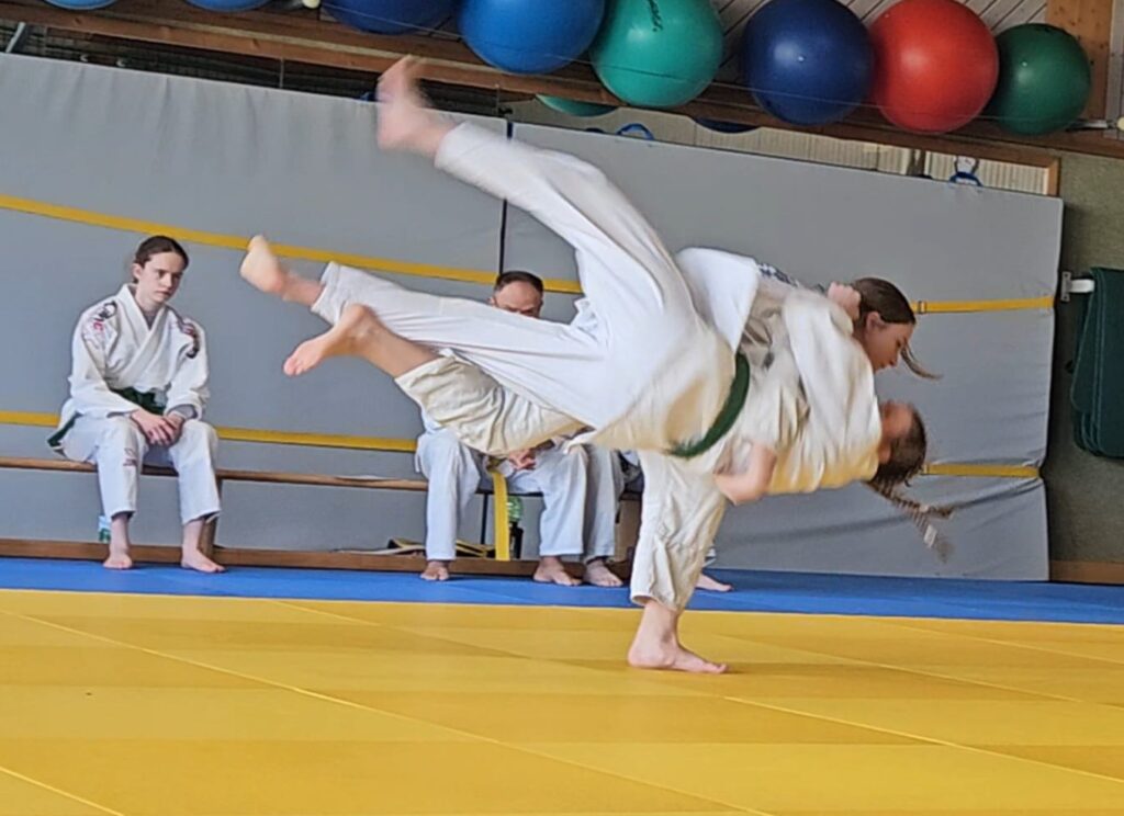 Unter den prüfend­en Augen von Armin Haus­mann 6. Dan (TV Alt­dorf); Jür­gen Wid­mann 2. Dan (AJJC Nürn­berg) zeigten alle Beteiligten konzen­tri­erte, saubere Leis­tun­gen und viel Selbstvertrauen.