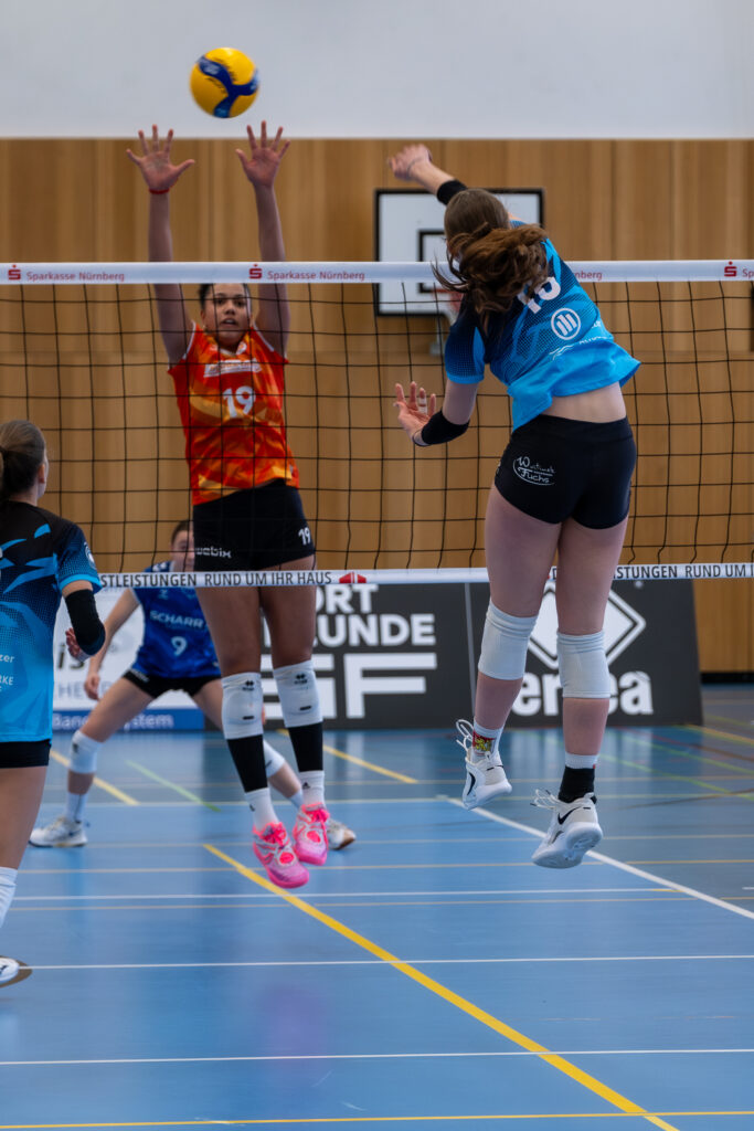 Die Badenerinnen um Zuspielerin Dosenbach (MVP) meldeten sich im zweiten Satz mit beherztem Engagement zurück. Doch die Mittelfränkinnen zeigten weniger Schwächen und packten im Block auch energischer zu. Zudem präsentierte sich Abwehr-Libera Maria Melczer in starker Form: „Ich habe in der Feldabwehr in unserem Stellungsspiel immer bewusster ins Spiel gefunden. Und die Haltung im Team ist heute super gewesen,“ konnte sie nach dem erneuten 25:20 Satzgewinn zurückblicken. Allerdings musste der TV, der sich eine deutliche Führung herausgespielt hatte, noch bangen, als Karlsruhe am Satzende Punkt um Punkt aufholte.