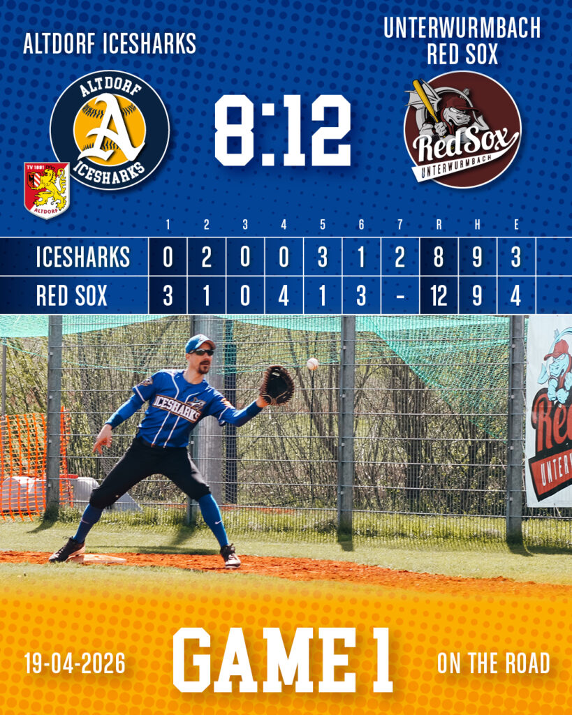 Zum Auftakt der Saison 2026 nach der Winterpause waren die Altdorf Icesharks zu Gast bei ihren Freunden, den Unterwurmbach Red Sox. Bei frischen bis leicht nassem Aprilwetter entwickelte sich direkt zum Start ein intensives und umkämpftes Spiel, das die Gastgeber am Ende verdient für sich entscheiden konnten.