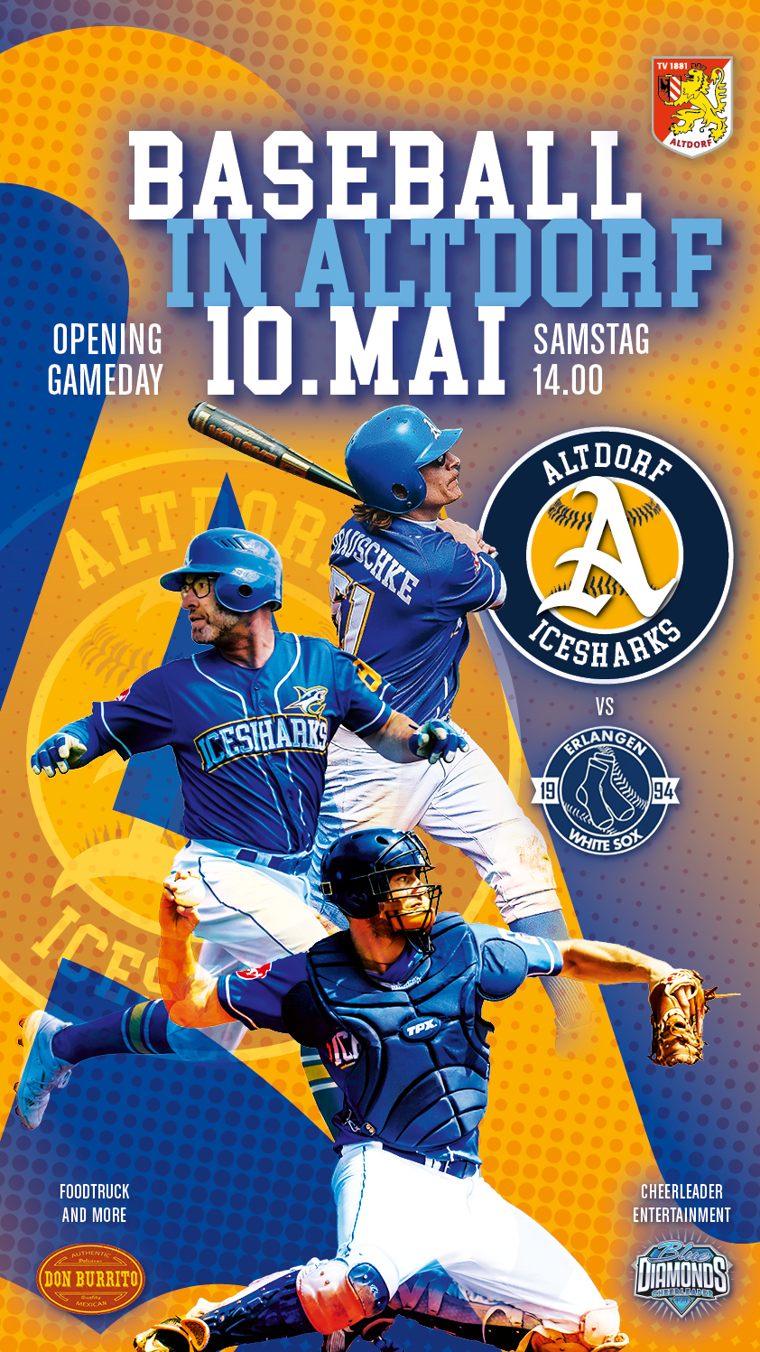 Am Samstag, den 10. Mai ab 14.00 Uhr empfangen die Altdorf Icesharks zum ersten Mal die White Sox aus Erlangen. In der Landesklasse Baseball Nord werden Singlegames über 7 Innings (oder mit maximalem Zeitlimit von 2,5 Stunden) gespielt.