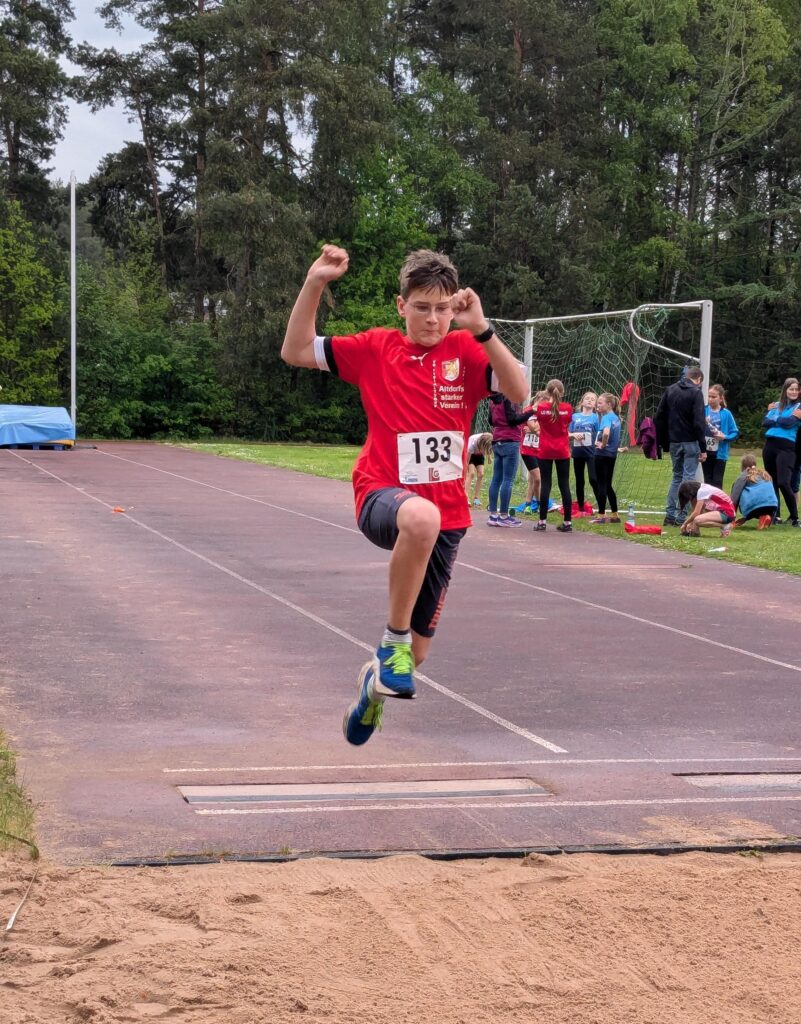 Die größte Altdorfer Beteiligung gab es in der Altersklasse U18 der weiblichen Jugend. Emma G. konnte im Weitsprung ihre Stärken voll ausspielen und erreichte mit 4,51 Metern den dritten Platz unter zwölf Starterinnen. Im anschließenden 100-Meter-Lauf gewann Nina S. ihren Vorlauf und war damit die drittschnellste Sprinterin im gesamten Kreis Nürnberger Land.