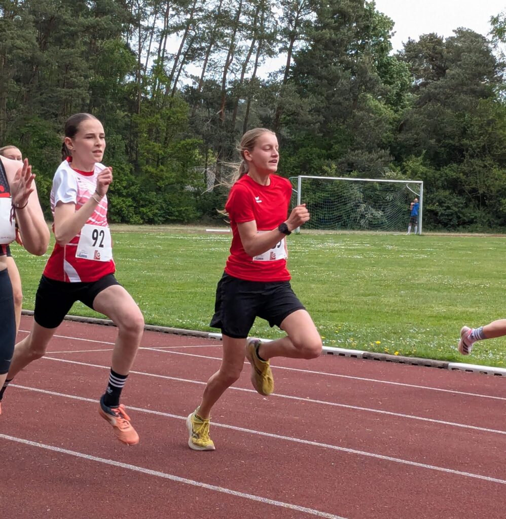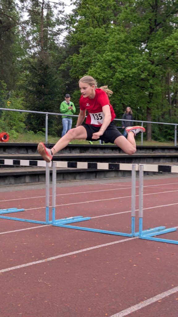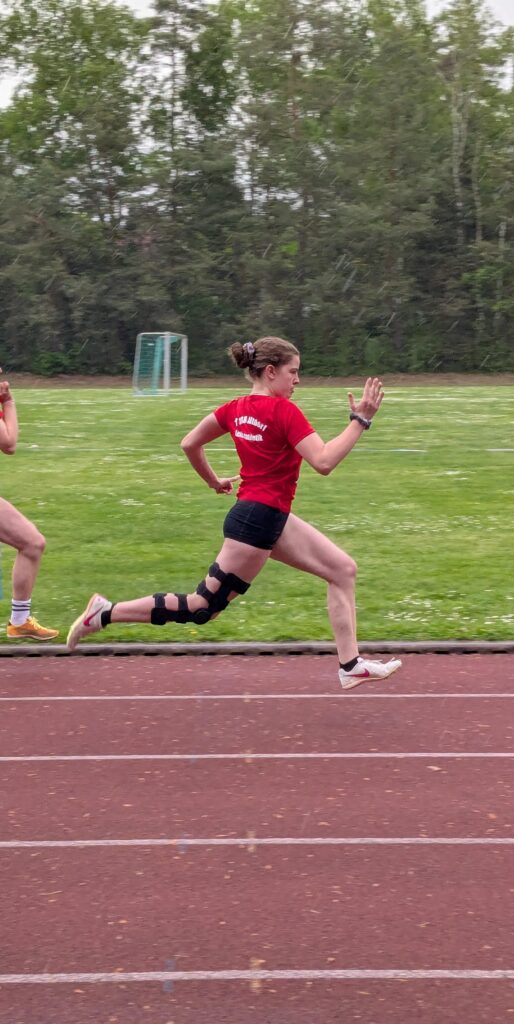 Bei den weiblichen Teilnehmerinnen war Marie G. (W14) die Jüngste. Sie zeigte ihre Vielseitigkeit, indem sie in gleich vier Disziplinen antrat: 100 Meter, 800 Meter, 80 Meter Hürden und Weitsprung. Auch ihre Mutter, Uta G., war mit angereist – nicht nur als Betreuerin, sondern auch als Teilnehmerin über die 800 Meter.