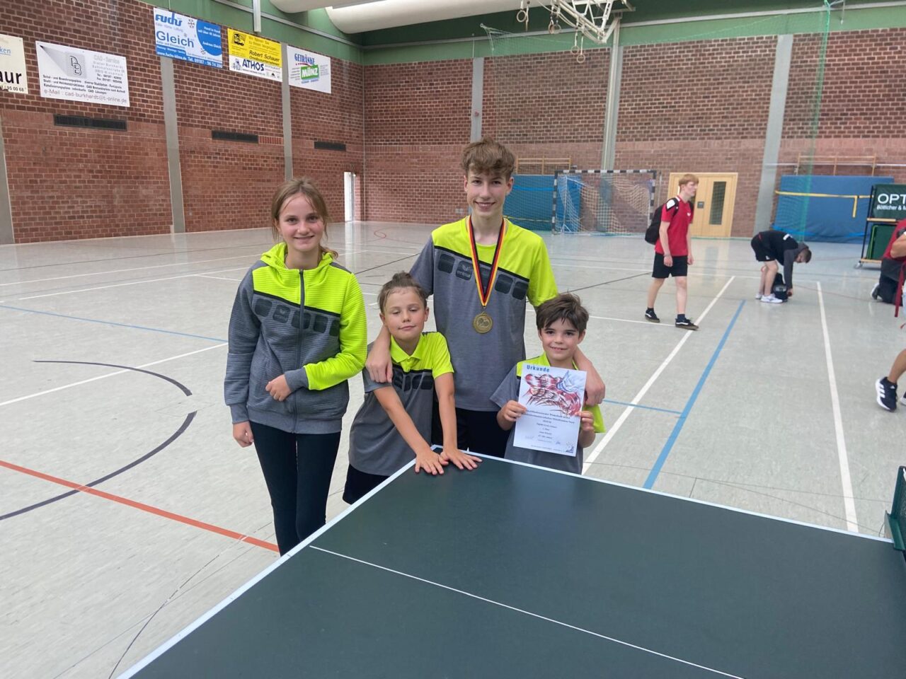 Am Son­ntag stand für die Nach­wuchsspiel­er das Qual­i­fika­tion­sturnier für die Bezirksmeis­ter­schaften an. Das Turnier fand in Winkel­haid statt, wobei für den TV Alt­dorf fol­gende Spiel­er antrat­en: Jonas Wierich (15 Jahre), Valentin Tabor (neun Jahre) und Philipp Giesel­er (acht Jahre) . Alle drei Spiel­er spie­len erst seit kurz­er Zeit Tis­chten­nis im Vere­in und nah­men somit zum ersten Mal an einem Wet­tkampf teil. Dem­nach starteten alle drei in der Kat­e­gorie fünf. Philipp war offen­sichtlich der jüng­ste Teil­nehmer und zeigte gegen die durch­wegs, deut­lich älteren Geg­n­er sehr ansprechende Leis­tun­gen. Er kon­nte zwar noch kein Match für sich entschei­den, aber sich immer­hin über einen Satzgewinn freuen. Sehr gut war, dass er trotz sechs Nieder­la­gen in Folge stets gute Laune hat­te und in jedem Spiel sein Bestes gab.👍👏 der ein Jahr ältere Val­li zeigte eben­falls sehr gute Leis­tun­gen und ließ sich auch durch mehrere Nieder­la­gen nicht beir­ren. Belohnt wurde er let­ztenen­des noch mit zwei Siegen.